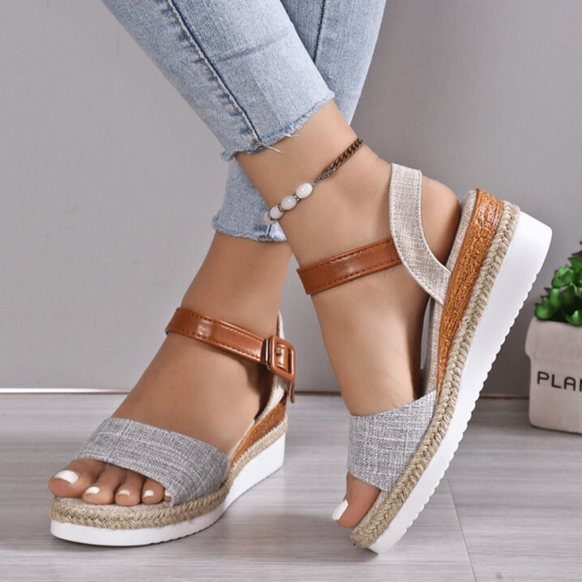 Perfect for warm-weather style, the Daisy Wedge Sandals pair soft fabric with smooth faux leather straps for a vintage-inspired look. A cushioned insole and lightweight wedge keep them comfortable from sunny afternoons to evening strolls.