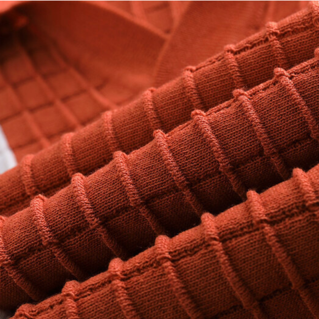 - Textured grid-knit finish